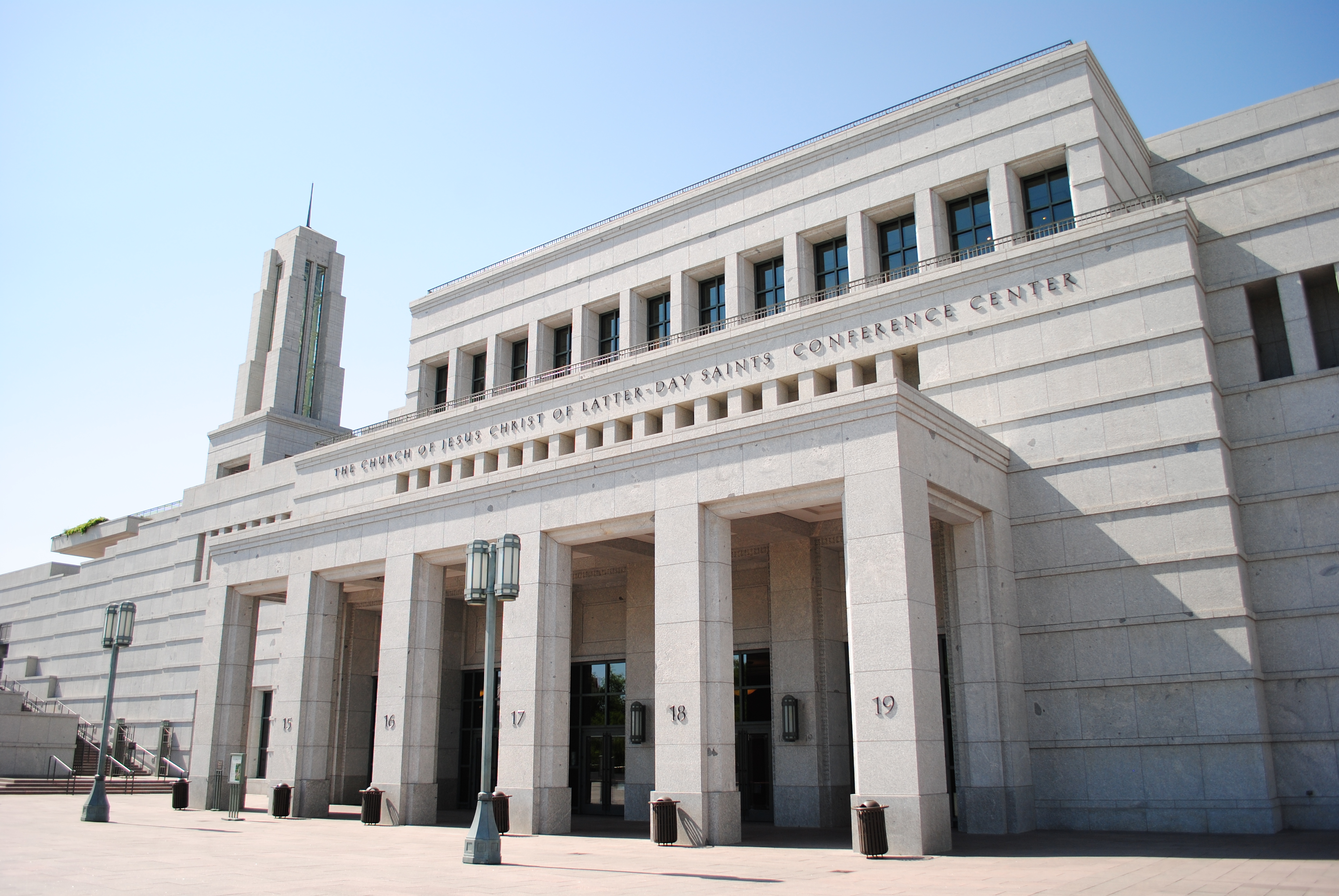 Salt Lake City ist mit ihren ca. 190’000 Einwohnern ziemlich überschaubar. Ich war überrascht, als ich bei der Einfahrt in die Stadt hauptsächlich Einfamilienhäuser vor mir fand, selbst im Zentrum der Stadt. Natürlich gibt es die traditionellen Hochhäuser ganz nach amerikanischem Stil, aber der Grossteil der Gebäude geht nicht über den 2. Stock hinaus. Das Zentrum der Stadt wird natürlich von der Kirche dominiert, vom sogenannten Temple Square. Der Tempel kann nicht besichtigt werden. Das Visitor Center nebenan tut aber alles um die Besucher willkommen zu heissen und ihnen alles rund um die Kirche zu erklären. Die meisten Mitarbeitenden dort sind junge Leute die gerade ihre Mission durchführen. Die Mission dauert für die Herren zwei Jahre, für die Damen anderthalb Jahre. Gegenüber dem Tempel steht das LDS Conference Center.