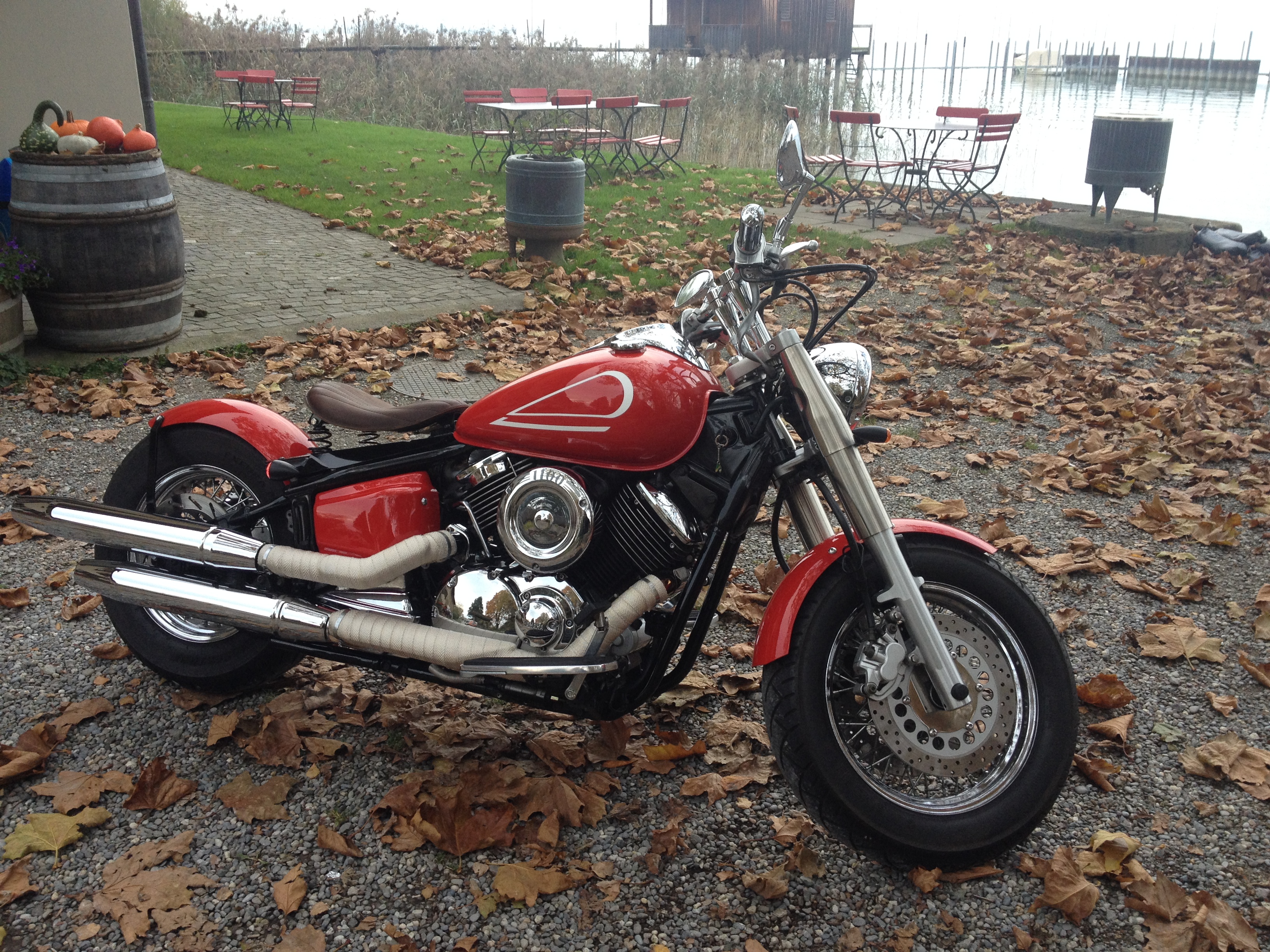 Blue was?? Ja richtig, Blue Collar Bobbers. Im Juli 2014 hatte ich mich entschlossen, eine gebrauchte Yamaha Drag Star Classic 1100 zu kaufen und sie mittels eines bobber Kits umzubauen. Nach einigen Recherchen hatte ich die Firma Blue Collar Bobbers aus Sandy, Utah gefunden, die für einige japanische Motorräder, solche Umbaukits herstellt. Lange dauerte es nicht und schon war das Set bestellt. Eine Woche später bei mir vor der Haustür (danke UPS!!), ging der Bastellspass los. Mitte August war die Schönheitsoperation abgeschlossen und der Altherrentöff sah endlich so aus, wie er es ab Band in Japan hätter aussehen solle. 😉 Weiter will ich den Umbau hier nicht beschreiben. Dies ist ja schliesslich ein Reiseblog, nicht ein Töfflibuebe-Forum. 😀