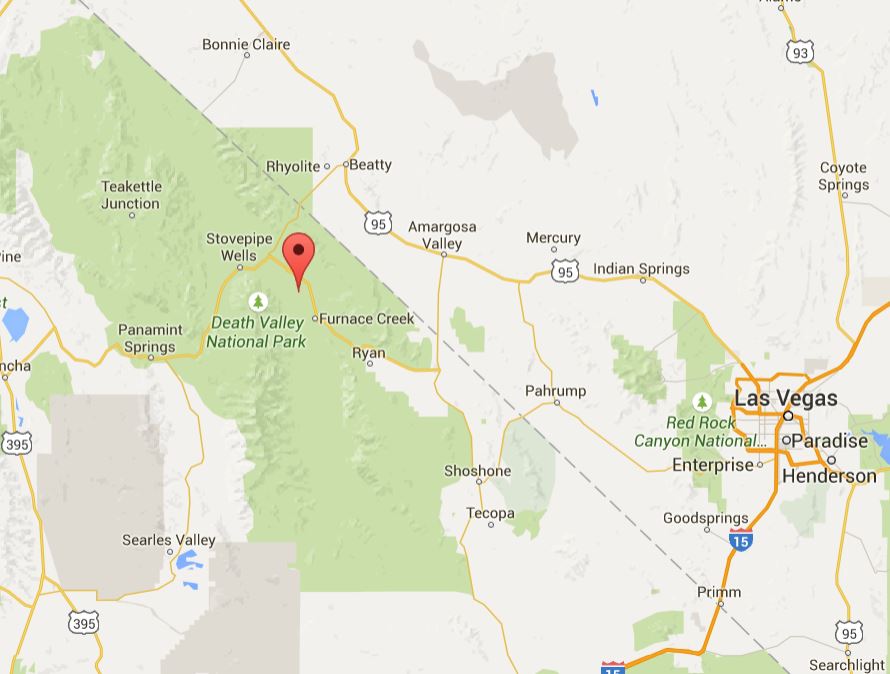 Oubliez tous les autres endroits brûlants dont j’ai pu écrire ces derniers mois. Ce n’est pas pour rien qu’on l’appelle la vallée de la mort…!! Death Valley se trouve juste à 140 miles au nord-ouest de Las Vegas. Venant du Grand Canyon, nous avions retraversé Las Vegas le soir tard. Cette fois-ci juste par l’autoroute. Néanmoins, la climatisation de la voiture avait du mal à maintenir la température de l’habitacle. Même de nuit il fait 45°C…