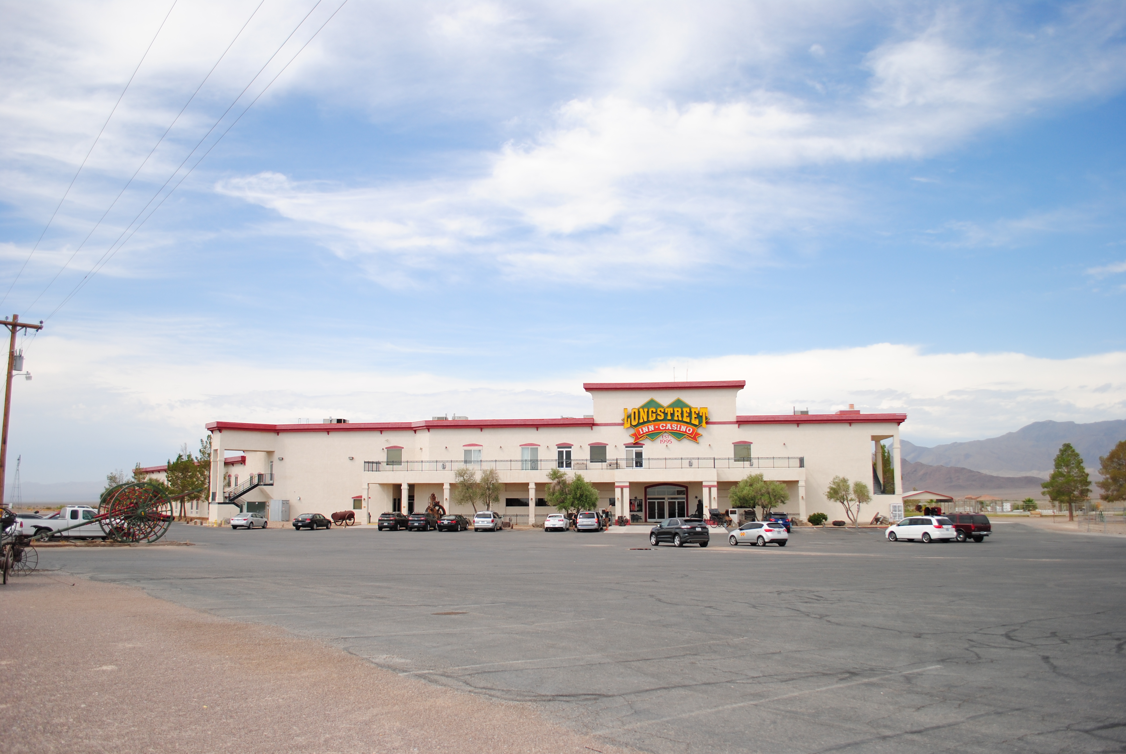 Bref, en nous rapprochant de notre hôtel, on nous n’étions pas vraiment sur de nous diriger dans la bonne direction, sachant que la seul chose qu’on avait vu pendant des kilomètres et de kilomètres était le désert… Et puis soudain, au milieu de rien du tout, juste avant la frontière avec la Californie, notre hôtel: Le Longstreet Inn Casino…!