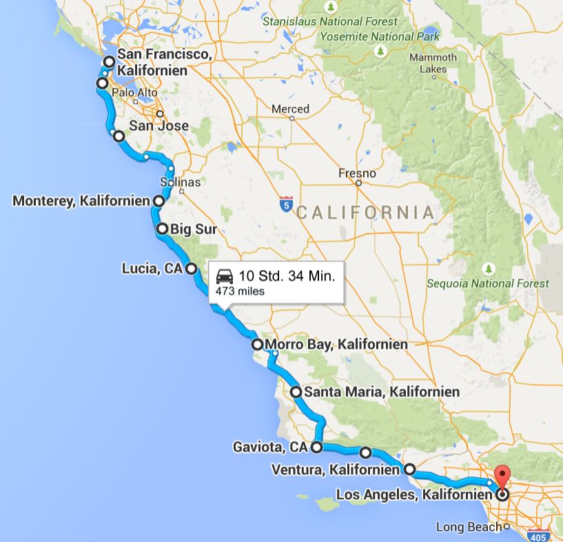 Jetzt ist es soweit; eben noch den Atlantik vor Augen habe ich nach zweieinhalb Monaten den Pazifik erreicht. Zusammen mit meinen Freunden haben wir den Pacific Coast Highway von San Francisco nach Los Angeles in den Angriff genommen. Erste Etappe: San Francisco nach Monterey. Anfangs wollten wir einfach mal eine Weile dem Pazifik entlang fahren. Drei bis vier Tage waren für die Strecke nach Los Angeles angedacht.